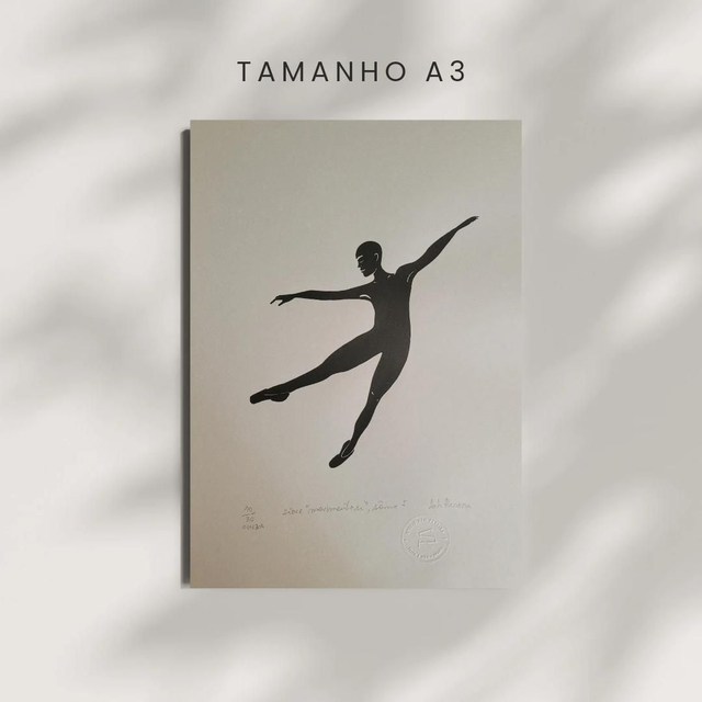 série “movimente-se”, título "sôma 5". Gravura em serigráfia, impressa em papel cinza, 210g, tamanho A3, dimensão 420mm x 297mm. Arte numerada e limitada, 50 impressões.